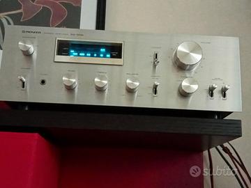Vendo amplificatore Pioneer Sa-508 serie blue line in condizioni perfette. Splendido Amplificatore Vintage Ottimo Suono Caldo anni '80. In Perfette Condizioni Sia Estetiche che Sonore. Nessun segno di ruggine-manopole presenti ed originali e scritte tutte perfettamente leggibili Ottime condizioni come da foto, perfettamente funzionante . Eseguita pulizia selettori e potenziometri. Suona molto morbido ed inutile dirlo è un ampli esteticamente favoloso in ambito vintage. Il Pioneer SA-508 è dotato di una sezione di amplificazione che offre una potenza stabile e costante, suono d'altri tempi per chi, come lo scrivente, è approdato nel mondo della Hi-Fi negli anni 70, con il vinile. L’Ampli , pur con la potenza di 25 w rms per canale suona pieno e pulito. ha un circuito di alimentazione che rende il "clipping" di questo amplificatore assai difficile, essendo ottimo e surdimensionato. L’avanzato circuito Phono ha delle ottime performance per quanto riguarda il S/N e sensibilità. Il livello di potenza è indicato da due tubi fluorescenti che hanno una risposta molto rapida. L’amplificatore è inoltre dotato di una ricca serie di funzioni accessorie, tra cui un filtro subsonico, un circuito di loudness, indicatori di funzione, due serie di ingressi per nastri e due serie di connessioni per diffusori, oltre a delle prese "switched" Caratteristiche tecniche Potenza di uscita: 25 watt per canale in 8Ω (stereo) Risposta in frequenza: Da 20Hz a 40kHz Distorsione armonica totale: 0.03% Fattore di smorzamento: 30 Sensibilità d’ingresso: 2,5mV (MM), 150mV (linea) Rapporto segnale/rumore: 76 dB (MM), 98 dB (linea) Uscita: 150mV (linea), 30mV (DIN) Impedenza di carico degli altoparlanti: Da 4Ω a 16Ω Semiconduttori: 3 x IC, 21 x transistor, 18 x diodi Dimensioni: 420 x 150 x 271 mm Peso: 6,7 kg Prezzo richiesto : Euro 180 trattabili . Vendo solo su Cagliari. Possibilità di visione/ascolto. Astenersi perditempo -si valutano permute anche parziali