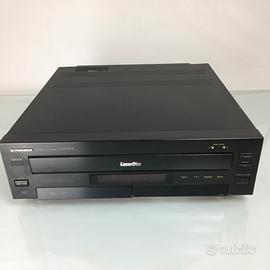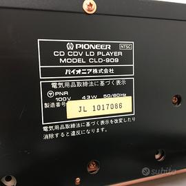 Lettore Laserdisc Pioneer CLD 909 compatibile NTSC, funzionante a 100V. Apparecchio originale giapponese. Il lettore si accende ma non legge alcun disco. Lo sportello comandi frontale è fissato col nastro da sotto in quanto si apre da solo (blocco rotto?).