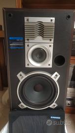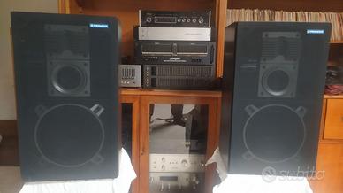 COME DA FOTO IN BUONISSIME CONDIZIONI SOLO QUALCHE PICCOLO GRAFFIO INVISIBILE Dati Produttore: Pioneer Modello: CS-797, anche componente del sistema X-A707 Nero/X-A700 Argento Anno 1985 Colore: noce scuro Dimensioni: 56 x 32 x 23 cm (altezza x larghezza x profondità) Peso: 7,5 Dati tecnici Tipologia: 3 vie, bass reflex woofer: cono da 200 mm Driver per le medie frequenze: cono da 77 mm Tweeter: cono da 66 mm Potenza gestibile (nominale/musicale): DIN 110 Watt Efficienza: circa 90 dB (1W/1m) Risposta in frequenza: 40 - 20.000 Hz. Impedenza: 6,3 ohm GUARDA GLI ALTRI MIEI ANNUNCI SEMPRE AGGIORNATI