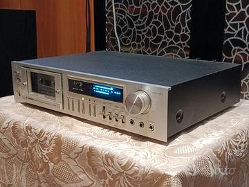 Vendo piastra a cassette stereo tape deck Pioneer CT-400 in ottime condizioni e perfettamente funzionante, manuale in formato elettronico .pdf, hi-fi vintage anni '80. N.B. Effettuata la sostituzione dell'idler e delle cinghie di trazione In caso di spedizione non utilizzo il servizio di tuttosubito. Accetto altro pagamento con video dimostrativo del funzionamento Caratteristiche: -Anno di produzione: 1980 -Frontale: allumino lucente -Vano cassetta con luce retroilluminato con meccanismo apertura basculante protezione testine -Contagiri e tastiera comando sono completamente meccaniche -Ingresso frontale per cuffia tramite jack da 3,5mm -Ingressi frontali per microfono L + R tramite jack da 3,5mm -Ingresso posteriore RCA (Rec) -Uscita posteriore RCA (Play) -Tipo di nastro: cassetta (STD - normale tipo I, CrO2 - biossido di cromo tipo II, Fe-Cr - ferrocromo tipo III, Metal - Metallo tipo IV) -Velocità: 100 sec (C-60) -Testine: 2 - 1 (sendust) x riproduzione / registrazione , 1 x cancellare -Motore: 1 - DC servo motor -Configurazione delle tracce: 4 tracce stereo a 2 canali -Risposta di frequenza: 20 - 15.000Hz +3db (nastro normale), 20 - 17.000Hz +3db (nastri CrO2, FeCr), 20 - 18.000Hz +3db (nastro metal) -Rapporto S/N: 58db (senza dolby), 68db (con dolby) -Wow & Flutter: 0,05% -Ingressi e sensibilita: microfoni 0,3mV, linea 50mV -Tecnologia Dolby System indicatore visivo (led) e selettore Dolby Nr On/Off -Selettori del tipo di cassetta inserita STD - CrO2 - Fe-Cr - Metal -Selettore Rec Mute (On / Off) -Selettore Timer Start (Rec / Off / Play) -Regolazione volume di intensita del segnale sia in entrata che in uscita tramite le apposite manopole -Indicatori Vu-Meter digitali per misurare l'intensita del segnale colore blu elettrico fluorescente -Dimensioni: L-42cm x H-9.8cm x P32.8cm -Peso: 6.5Kg Per informazioni non esitate a contattare Eventuale spedizione in TUTTA ITALIA CTF400 CTF 400