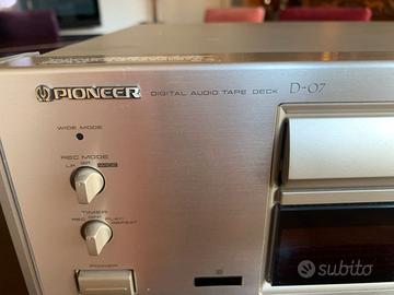 Vendo PIONEER D-07 DAT in ottime condizioni. Modello Top della gamma. Comprato nuovo ed usato molto poco. parte della mia collezione di registratori DAT. INFORMAZIONI: Un registratore DAT con campionamento elevato a 96 kHz e conversione Legato Link. Per registrare e riprodurre componenti ad alta frequenza superiori a 20 kHz, abbiamo sviluppato una modalità wide per il campionamento elevato aumentando la frequenza di campionamento da 48 kHz a 96 kHz, il doppio della frequenza convenzionale. Di conseguenza, la frequenza di registrazione e riproduzione ha raggiunto i 44 kHz, il doppio della frequenza convenzionale. Per ottenere questa tecnologia, abbiamo raddoppiato la velocità del nastro, aumentato la velocità di rotazione del tamburo da 2.000 giri/min a 4.000 giri/min in modalità wide e raddoppiato la larghezza di banda dell'amplificatore della testina da 4,7 MHz a 9,6 MHz. *I brani registrati in modalità wide non possono essere riprodotti nella modalità standard SP o nella modalità LP a lunga durata, e il tempo di riproduzione in modalità wide è la metà di quello in modalità SP. Con la conversione Legato Link per una riproduzione naturale della musica oltre i 20 kHz anche in modalità standard. La conversione Legato Link è una tecnologia che avvicina le componenti di frequenza dei suoni e della musica naturali alla forma d'onda del segnale originale. Esegue l'elaborazione del segnale digitale basandosi sul segnale registrato sul nastro e collega i dati con una curva di funzione continua, consentendo di riprodurre i suoni più vicini all'originale prima della registrazione sul nastro. Inoltre, stimando il segnale originale prima della registrazione e riproducendo il suono a 20 kHz o superiore in base alle caratteristiche di attenuazione 1/f, si ottiene una riproduzione del suono più naturale. Il convertitore A/D è dotato di un convertitore multibit a 18 bit e di un circuito dither per ridurre la distorsione non lineare e la distorsione incrociata a 0.