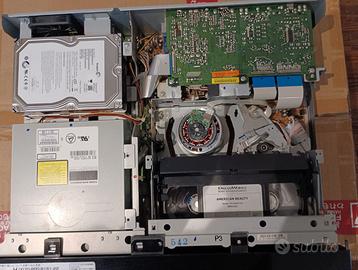 Forse un riparatore elettrotecnico ed esperto in elettronica può ripararlo con qualche saldatura o qualche condensatore nuovo, tutti i pezzi sembrano stare al loro posto e sarebbe un peccato buttare al secchio un oggetto simile che quando è uscito in negozio costava intorno ai 1.000 euro. In tal caso, con prova di funzionamento con foto e video, sarei anche disposto a ri-acquistare. Nella vendita è compreso il lettore, il suo cavo alimentazione e l'hard disc hdd interno (che solo questo ha un valore di 35 euro -> Seagate ST3500321CS da 500 gb).
