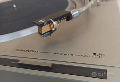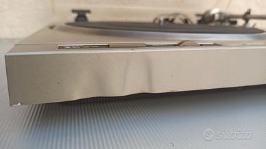 Vendo giradischi trazione diretta Pioneer PL-200, condizioni buone come da foto, funzionante, sul frontale lato sinistro è presente una deformazione dovuta al calore di una lampada, esteticamente non è il massimo ma non influisce sul funzionamento. I gommini delle molle dei piedini sono da sostituire, ma si trovano facilmente sul web. Manca il centrino per i 45gg. Preferisco il ritiro a domicilio.
