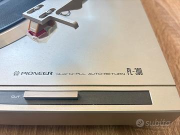 Pioneer PL300 giradischi a trazione diretta controllata al quarzo. Telaio fluttuante. Completo di testina e puntina perfette. Tutto perfettamente funzionante. Cappa integra con qualche graffio. Prova di ascolto possibile. Solo ritiro a mano. Fragilissimo
