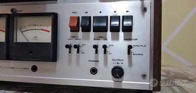 Pioneer RT 1011 L registratore a bobine del 1974,4 tracce 2 canali,3 motori e 3 testine,2 velocità di registrazione e riproduzione 9,5 e 19 cm/s,bellissimi e grandi vu meters illuminati,monta bobine da 18 e 26,5 cm con attacco Cine e Nab,2 posizioni per regolazione bias (normal e high),livello in uscita regolabile,laterali in legno,ingressi per 2 microfoni,uscita e ingresso linea rca.Il registratore è in ottime condizioni estetiche nonostante l'età,qualche segno c'è,(ha pur sempre più di 50 anni...) è funzionante (play,ff,rew,rec) ma è opportuna una revisione perchè non cancella bene su un canale e si sente in sottofondo un ronzio e per questo motivo viene venduto a un prezzo più basso della sua reale quotazione e viene venduto senza accessori.Per qualsiasi dubbio o chiarimento contattatemi senza problemi.No reso,no garanzia.