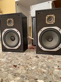 Pioneer s-z 71, bookshelf di medie dimensioni. Grande woofer da 20cm con sospensione in gomma telata praticamente eterna. Potenza 100w su 8 Ohm, basso corposo e medio-alti assai gradevoli. Ideali per completare e collezionare i gloriosi impianti degli anni 80-90. Testati e funzionanti. Minima spesa, massima resa. Li vedrei bene per ore di ascolti ininterrotti in un negozio di vinili.