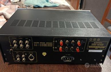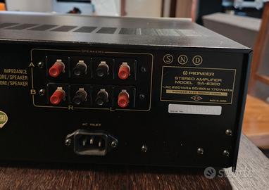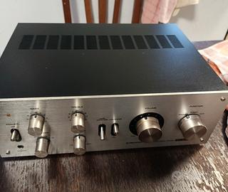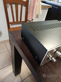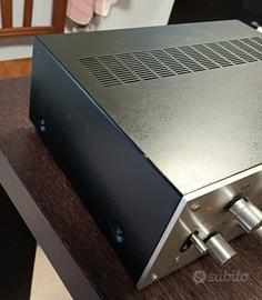 Vendo amplificatore integrato Pioneer SA-6300, un classico dell'Hi-Fi anni '70 dal suono caldo e dettagliato. L'apparecchio è in condizioni estetiche molto buone e perfettamente funzionante in ogni sua parte. Punti di forza: Revisionato di recente:Ho effettuato personalmente la pulizia dei potenziometri e dei selettori con prodotti specifici. Volume, Bassi, Alti e Bilanciamento sono fluidi eNON gracchianodurante la regolazione. Ingresso Phono:Stadio pre-phono di ottima qualità, ideale per chi vuole collegare un giradischi e godersi i vinili. Estetica Iconica:Frontale in alluminio spazzolato tipico dell'epoca d'oro Pioneer. Specifiche tecniche: Potenza: 20W per canale su 8 Ohm (perfetto per ascolto domestico). Ingressi: Phono, Tuner, Aux, Tape. Uscite per due coppie di casse (A, B, A+B).