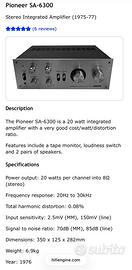 Propongo amplificatore vintage PIONEER anni 70 in buono stato estetico e funzionale, di ottima qualità sonora e di costruzione interna , 20watt su 8ohm per canale, ha una buona uscita phono per giradischi, altre specifiche in foto. Possibilità di ritiro a mano in zona Spedisco con ottimo imballo Vedi altri miei annunci come amplificatori , lettore cd , giradischi, casse e diffusori acustici, sintoamplificatore, radio tuner , piastra cassette , pre e finale , dvd , subwoofer, equalizzatore e altro materiale stereo hifi .
