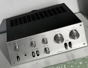 Un amplificatore stereo vintage degli anni '70. Offre un suono caldo e chiaro con una potenza di 30 watt per canale. Dimensioni (L x P x A): 350 x 125 x 282 mm