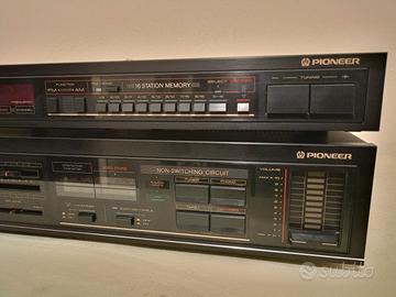 Ottimo amplificatore con in regalo la sua radio. Metà anni 80 quando si cercavano linee moderne senza manopolone e dimensioni più sottili. 50 watt per canale su 8 ohm, suono Pioneer completo e avvolgente. 6 kg di peso, 42x98x27 le dimensioni dell'amplificatore. Dotato di ogni ingresso necessario per le vostre esigenze compreso quello phono.Posso spedire con pacco tracciabile, disponibile ad ascolto presso la mia abitazione e per qualsiasi chiarimento sono a disposizione.