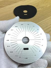 Quadrante di ricambio realizzato in ABS bicolore nelle finiture argento e oro spazzolato, inciso e tagliato al Laser