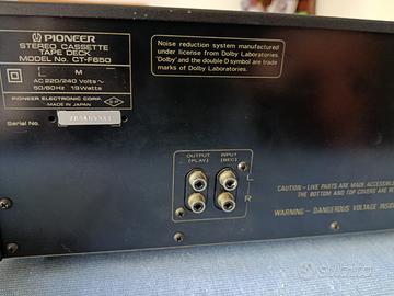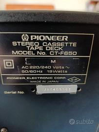 Pioneer Stereo Cassette Tape Deck Model CT-F650 oggetto in buone condizioni estetiche e funzionante. Per qualsiasi informazioni e chiarimento non esitate a contattarmi. Solo ritiro presso domicilio in quanto è pesante.