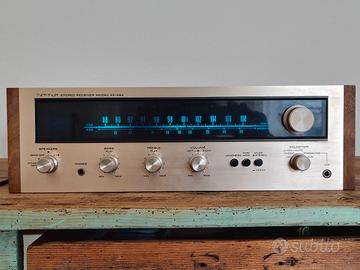 Vendo splendido sintoamplificatore Pioneer SX-424, un classico dell'era d'oro dell'Hi-Fi (anni '70). Perfetto per chi cerca il tipico suono caldo del vintage e un'estetica iconica grazie al cabinet in legno e alla celebre illuminazione blu della scala radio.