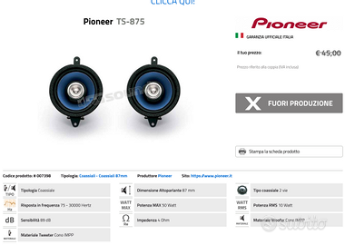 casse coassiali Pioneer da 87,5 50 w di picco.