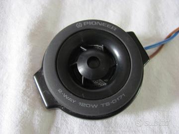 Vendo sistema di altoparlanti a due vie Pioneer TS-D171 (Made in Japan),in origine erano una coppia di coassiali,poi sono stati smembrati per i vantaggi dell'installazione separata,il dato di risposta in frequenza complessiva è indicato in 30-30.000Hz,la potenza sopportata del sistema è di circa 60W RMS in regime continuo(120 max.),sensibilità di 89 dB,e impedenza 4 ohm.