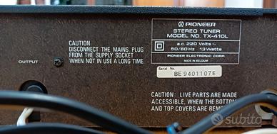 Stereo tuner AM/FM prodotto da Pioneer alla fine degli anni 70. L'oggetto è perfettamente funzionante. Si aggancia anche alla ricezione in stereo(come si vede in foto). Il pannello frontale è stato lucidato. Le condizioni estetiche generali sono buone(vedi foto).