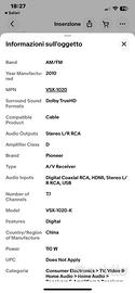 Pioneer VSX-1020-K Ricevitore Home Theater multicanale audio/video con telecomando e ricevitore / DAC DS 200 pro descrizione vedi foto