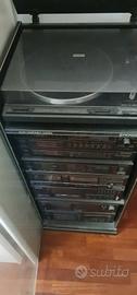 Vendo storico sistema Hi-Fi Pioneer X-A999 (serie top di gamma midi fine anni '80), un pezzo di design e tecnologia hi-fi d'epoca. Il sistema è completo di tutti i moduli originali, mobile rack Pioneer con anta in vetro e diffusori coordinati.