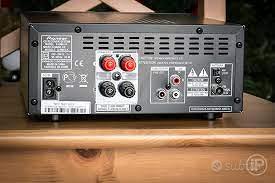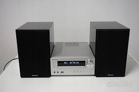 Caratteristiche principali X-HM51 CD, File MP3, WMA da USB e CD-R/RW Audio via streaming Bluetooth Radio FM/AM Diffusori 2 diffusori a 2 vie bass reflex 50 watt 1 USB (anteriore) 1 ingresso linea RCA 1 ingresso jack da 3,5mm 1 diffusore tipo vite 1 uscita pre-out subwoofer 1 uscita per cuffie jack da 3,5mm Display Display LCD + orologio con funzioni di timer e sleep Unità telecomando in dotazione Tuner Impostazioni predefinite 30 FM / 15 AM Dimensioni (L x A x P) • Unità principale: 215 x 100,5 x 325 mm Diffusori (ognuno): 156 x 240,5 x 243 mm Peso netto • Unità principale: 2,3 kg Diffusori (ognuno): 3,5 kg Consumo:in uso/standby 36 W / 0,5 W Alimentazione AC 220/240V, 50/60Hz Diffusori Bass reflex Diffusori a 2 vie bass reflex Woofer da 120 mm Tweeter a cupola morbida da 25 mm Cassa Magnetic Shield Potenza RMS anteriore 50W + 50W (4Ω) Audio Controllo bassi/alti P-BASS Impostazioni predefinite dell'equalizzatore Flat / Active / Dialogue / Night Generazioni compatibili Via USB: iPhone 4/4S/5 iPad/iPad 2/3ª generazione, iPad/4ª generazione, iPad/iPad mini iPod touch tutte le generazioni iPod nano 3ª generazione e superiori iPod classic tutte le generazioni iPod shuffle tutte le generazioni Completo di antenna AM e FM prezzo eggermente trattabile Solo ritiro, non spedisco.