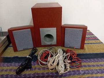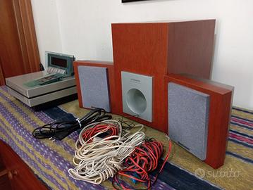 Pioneer XC-L7 Ricevitore CD/Amplificatore- PIONEER XC-L7 AMPLIFICATORE- LETTORE CD -RADIO FM COMPLETO DI TELECOMANDO PIÙ UNITA DISPLAY E N. 2 ALTOPARLANTI N. 1 SUB..WOOFER. TUTTO IN LEGNO CHIARO IN OTTIME CONDIZIONI, REVISIONATO CAMBIO CINGHIA PULITO ECC. IL TELECOMANDO E QUASI NUOVO COMPRATO DA POCO. COMPLETO DI TUTTI I SUOI ACCESSORI E CAVI VARI. La sezione RDS/CD dell'amplificatore/sintonizzatore eroga una potenza RMS di 40 +40 watt su 8 ohm. Sul pannello posteriore è presente la possibilità di collegare un subwoofer incluso. Dispone di un ingresso RCA per collegare un dispositivo audio e di un'uscita ottica. Poco trattabile.