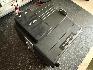 Ponte ripetitore in fonia UHF realizzato con due apparati Motorola GM900. Circuito COR con regolazione del tempo di coda e audio di transito. Potenza 25 W Alimentazione esterna 13,8Vcc. Programmato attualmente TX 430.025 MHz, RX 431.625 MHz con tone squelch in ricezione 110.9 Hz, potenza attuale 13 W, senza duplexer. Eventualmente programmabile su frequenze desiderate. Opzionale interruzione transito tramite DTMF e messaggio vocale in tx