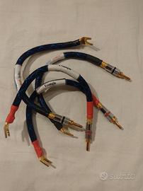 Vendo 4 ponticelli forcella/banana di cavi Triangle modello Ghost ( molto costosi ), quelli con guaina blu elettrico con cui fanno il cablaggio interno dei