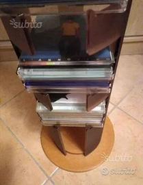 Porta cd a colonna in materiale melacrinato colore marrone scuro, molto elegante nel suo aspetto che si presta sia ad ambienti moderni che classici e da ufficio . ACQUISTATO FIERA ANTIQUARIATO AREZZO. OGGETTO DESIGN FINE ANNI 90 INIZIO ANNI 2000.