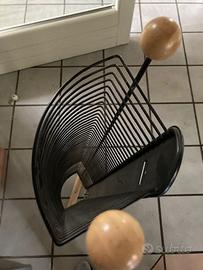 Porta cd a torre in metallo nero e legno: altezza cm 100 ca; 46 posti per cd singoli più 8 posti per cd doppi.