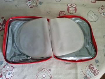Il porta CD è stato usato ma in ottime condizioni. Il cofanetto è morbido e gonfiabile su entrambi i lati, è chiuso con cerniera zip, all'interno è composto da 6 buste porta compact disk. Aperto misura cm 30, chiuso misura cm 15x16 ed è alto cm 7.