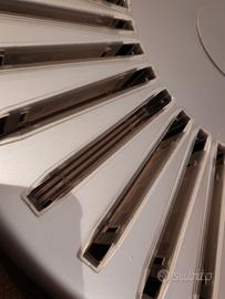 Estetico e funzionale, seduce con un design contemporaneo che valorizza gli ambienti di gusto moderno. Di forma circolare, è realizzato in lamiera di alluminio tornito, anodizzata naturale A000, con vani porta cd in stirolux semitrasparente per non rovinare le custodie.