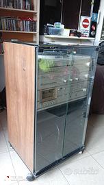 Mobiletto mobile d'epoca anni 70-80 in legno e vetro portagira-dischi portastereo con vano porta-dischi .