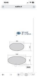 Supporto x TV a parete con due ripiani ovali in vetro , elegante, con curve sinuose e materiali lucidi e metallizzati. Bello ,per avere un angolo TV in ordine senza fili e spine.