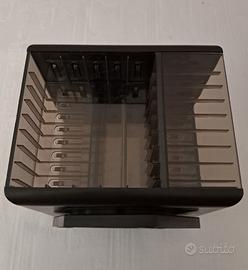 Vendo n. 2 porta Musicassette modello Girandola che può contenere 5 cassette per lato con custodia messe in verticale oppure 8 cassette senza custodia in orizzontale. Buone condizioni come da foto. No spedizione, consegna solo a mano.