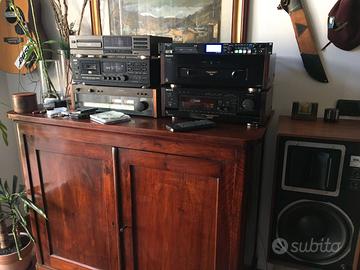 Preamplificatore di riferimento,made in Japan,prestazioni di assoluto rilievo,versione con fianchetti in legno,con telecomando. Finale di potenza da 110 Watt,in grado di pilotare 2 coppie di diffusori su 8 e 4 Ohm,componenti selezionati. Visionabili e con possibilità di ascolto con diffusori ESS,made in USA.