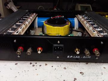 Vendo favoloso preamplificatore a valvole " Full Balanced " realizzato dalla E.P.Lab di Bari con le PCC189 e alimentazione con raddrizzatrice EZ80. Il preamplificatore ha due ingressi XLR ed è possibile utilizzare anche i due ingressi RCA chiaramente collegati all'ingresso " signal + " della presa XLR. Il telecomando radio frequenza gestisce i potenziometri motorizzati della Alps pertanto avendo due potenziometri separati può servire per bilanciare in maniera distinta il volume tra il canale SX e DX. Il livello delle uscite XLR è di 12volt mentre le RCA di 6Volt . L'impedenza di uscita XLR è di 560 ohm mentre quelle RCA è di 280 ohm pertanto si interfaccia bene con qualsiasi tipo di finale. L'alimentatore è realizzato con due trasformatori con nucleo a " C " , uno per i filamenti e l'altro per la tensione anodica e servizi. Il suono è preciso e dettagliato con una scena acustica ampia e spettacolare già dopo qualche minuto di riscaldamento.L'amplificatore finale di potenza a stato solido da 70Watt con impedenza di uscita minima pari 2 ohm ha i primi 18 watt in classe "A" mentre i restanti 70watt ( abbondanti ) sono in classe AB. Pilota qualsiasi diffusore avendo elevata corrente di uscita. Per ulteriori info chiamare il 328 0214416.