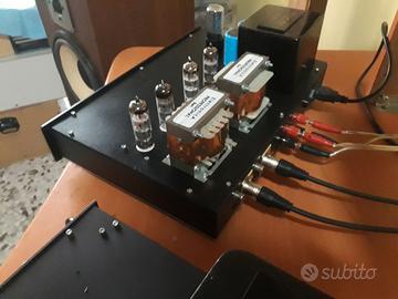 vendo preamplificatore a valvole realizzato con le EF86 e finale valvolare da 14Watt in classe A realizzato con le famose PCL82. Il pre ha l'alimentazione completamente a valvole con la raddrizzatrice 5Y3 della Philips e le EF86 della Philips ( NOS ). Questa coppia di elettroniche ha una elevata qualità soniche meglio se collegate a diffusori ad alta efficienza. Per qualsiasi info potete chiamare il 328 0214416.