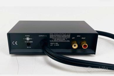 Per citare qualche nome, sul mercato troviamo il QED DS-1, qualche modello Rotel, ilKAB PH-1(recensito qui su TNT-Audio) e il NAD PP-1 oggetto di questa prova: un apparecchio destinato ad un vasto pubblico, dal costo contenuto (uno dei più economici in assoluto), basato su semplici operazionali, dotato di una alimentazione esterna da 15 Volts e di cavi di segnale di buona qualità.