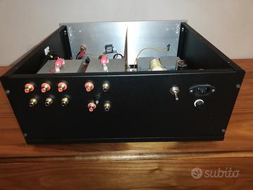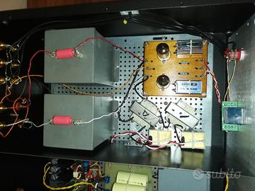 In vendita preamplificatore solo linea a triodi, realizzato con componentistica allo stato dell'arte. È un progetto originale e non troverete nulla di simile in rete. Utilizza nello stadio di preamplificazione dei triodi di potenza, la Valvola 12b4a, una sorta di 2a3 a riscaldamento indiretto. Il circuito è realmente innovativo: la polarizzazione della valvola è effettuata con una pila al litio. Questo permette di rendere realmente senza feedback l'intero percorso del segnale. La Valvola è caricata con un'induttanza anodica e non con una banale resistenza. La regolazione del volume è effettuata con un alps blu ed il selettore degli ingressi è un Grayhill di elevatissima qualità. I condensatori di uscita sono dei carta ed olio di elevatissimo pregio. L'alimentazione è curatissima. L'anodica è realizzata a partire da una rettificatrice 5y3gt NOS. A seguire due induttori con nucleo a C e solo condensatori in polipropilene. L'alimentazione dei filamenti è stabilizzata con circuito realizzato ad hoc. Il suono è di elevatissima qualità, immagine grande ed a fuoco, estensione in frequenza esemplare. Gamma media finissima e bassi incredibilmente tesi e veloci.