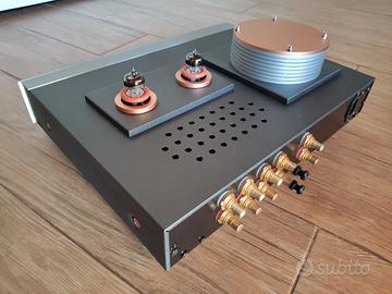 Preamplificatore valvolare solo linea (no stadio phono). Costruzione artigianale con materiale di pregio ed estetica curatissima. Quattro ingressi con led frontale che indica quale si sta utilizzando, potenziometro a scatti Alps serie Blue, pomelli ricavati dal pieno con perni che viaggiano su cuscinetto, selettore ingressi a relè. Le valvole sono Nuvistor e Ecl805 NOS. Ideale sia per essere collegato a finali valvolari che allo stato solido. Suono neutro senza enfatizzazioni particolari soprattutto nelle frequenze basse che risultano presenti ma non goffe.Non sono state utilizzate schede cinesi o kit diy, qui tutto è stato fatto su misura per questo preamplificatore. Il pre è praticamente nuovo, realizzato per pura passione e poi praticamente inusato se non per alcuni test. . Ritiro a mano,troppo lavoro per farlo e poi magari vederlo sfasciato per colpa di un corriere maldestro. Si valutano permute soprattutto con diffusori o finale in classe D.