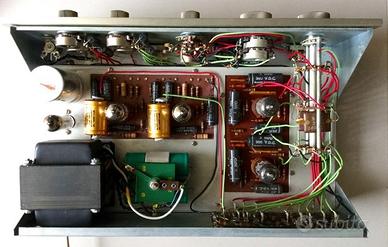 Perfetto. Volendo vendo in pacchetto con i finali Mono tra i miei annunci e regalo cavi di Potenza (valore 150 euro) The Most Important Preamplifier In the World: The Dynaco PAS Introduction: The venerable Dynaco PAS is perhaps the most famous stereo preamplifier of all time, Much like the Dynaco ST-70, it introduced the magical sound of tubes to thousands of audiophiles throughout the past decades. The PAS is still a popular model, both in stock form or as a platform to be tweaked and modified. In this article, I will touch on a general outline of the circuit, the sonics strengths and weaknesses, some of the more popular modifications, and an idea of what to look for when rolling tubes. The Circuit: So what is a Dynaco PAS? There are three iterations. The PAS-2, the earliest stereo version, with circuitry taken from the PAM-1 mono unit and a gold faceplate with brown knobs. The PAS-3, with a more modern silver faceplate with matching knobs. And finally, the PAS-3X with improved tone controls. This is a full-function preamplifier with tone controls and inputs for phono, reel-to-reel, tuner, and others. Gain, of course, is higher than modern preamplifiers since this was the days before high output CD players. All PAS preamplifiers share the same circuit: For the phono stage, one 12AX7 per channel, each section in series, using loop negative feedback connected to a capactior and resistor network to provide the RIAA equalization. For the linestage, a 12AX7 per channel, each section in series, utilizing loop feedback to lower distortion and provide a low enough output impedance to drive cables into a high impedance input of an amplifier. Power supply rectification is handled by a 12X4 tube. Filaments for the 12AX7s come from a voltage-doubler circuit, which - as the namesake suggests - doubles the supplied AC voltage from the transformer and smooths it out to DC. Having DC on the filaments also helps to reduce hum. Stock Sound: My own experience wit
