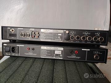 Preamplificatore Naim NAC 112X (s.n. 218506) + amplificatore NAP 150X (s.n. 248726) usati, con imballi originali, manuali e telecomando. Vendo per passaggio a Supernait 3.