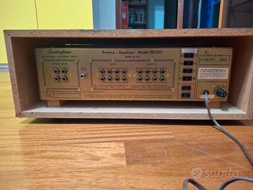 Model PE 2217. Prestigioso preamplificatore made in USA con 2 ingressi per giradischi e 4 ingressi di linea. 2 uscite preamplificate e doppia uscita tape. Equalizzatore a 10 bande. Bellissimo il suo case in legno (originale). Revisionato prima della messa in vendita: no ronzii o fruscii, qualità sonora eccellente. Gradito il ritiro diretto con prova.