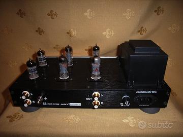 In vendita preamplificatore fono a valvole , utilizza quattro 12AY7+ una 6350+una 6x4 raddrizzatrice, tutte fornite. Sensibilità di ingresso MM 47Kohm, uscita circa 350ohm, RIAA +/- 1,5db 25hz-20khz, guadagno 40db, alimentazione 230v alternati 50hz, dimensioni 34x12,5x18,3 cm, peso 4,8 kg, telaio in alluminio, cablaggio interamente filato a mano, garanzia 2 anni escluse le valvole garanzia un anno.