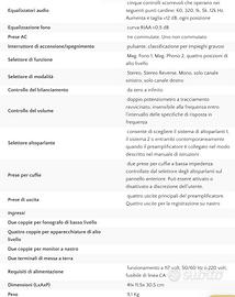Preamplificatore vintage ricercato per la sonorità. È stato completamente revisionato, puliti e disossidati tutti i contatti, i potenziometri , le prese rca, e sono stati sostituiti tutti i condensatori compromessi dal tempo, come da allegato. I componenti sostituiti provengono da canali ufficiali (RS components, ho bolla di consegna). Non ci sono particolari rumori, frusci o difetti. Provato in laboratorio e all’ascolto é tutto funzionante. Accetto proposte ragionevoli. Imballo a prova di corriere con plastica a bolle e polistirolo.