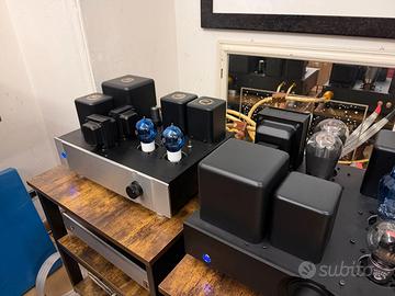 PREMESSA: di norma mi scrivono solo perditempo, mitomani, disturbati di ogni risma, pseudo commercianti accattoni, e quindi NON LEGGO NE TANTOMENO RISPONDO AI MESSAGGI, contatti solo ed esclusivamente TELEFONICI al tretrecinque5629513.Vendo un pre a valvole artigianale a trasformatori, nuovissimo, progetto originale, componentistica di livello molto alto, suono inarrivabile per macchine con uscita ordinaria. Il preamplificatore utilizza due tubi 6SN7, trasformatori di ingresso con permalloy, trasformatori di uscita a doppia C in amorfo con traferro (per intenderci, hanno dimensioni e peso simili a quelli di uscita per la 2A3), potenziometro resistivo blindato Eizz, telaio amagnetico in alluminio, e naturalmente nessun condensatore sul segnale. Quest’ultimo entra sul trasformatore di ingresso, passa per la 6SN7 ed esce purissimo dal trasformatore di uscita. Gli zoccoli delle valvole sono i preziosi Eizz in puro teflon con i pin placcati oro, assolutamente antimicrofonici e indistruttibili. I filamenti delle valvole hanno il loro trasformatore di alimentazione dedicato che serve due distinti circuiti di regolazione completamente separati, uno per ciascuna valvola. Anche l’anodica ha il suo trasformatore dedicato, un circuito di livellamento a doppio pi greco facente uso di tre grandi induttanze di filtro e di condensatori SCR in polipropilene ad alta tensione. Una macchina del genere è in grado di pilotare qualsiasi finale a valvole o a stato solido con decisione ma anche con un grado di trasparenza e di musicalità incredibile, un preamplificatore veramente da ascoltare. Grazie ai trasformatori in ingresso e in uscita e alla poderosa alimentazione il pre è assolutamente silenzioso, niente soffi o ronzii tipici dei valvolari, solo esclusivamente musica. Viene via a 900 euro assolutamente INTRATTABILI scambio a mano a Roma, non spedisco, ed è un regalo, in pratica neanche il costo dei materiali. REPETITA IUVANT: solo contatti telefonici al tretrecinque5629513