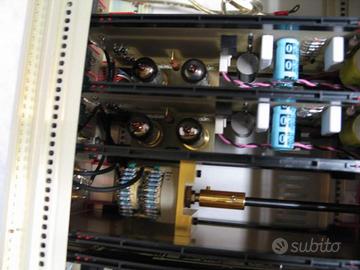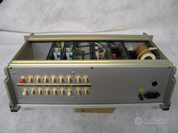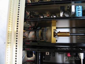 Preamplificatore solo linea a triodi ( 6C4) su circuiteria Conrad Johnson. 6 ingressi commutati a relè, muting direttamente sull' uscita, sempre a relè, volume con resistenze all' 1% e commutatore a contatti dorati. Completamente dual mono, alimentazioni stabilizzate, anche per i filamenti. Max liv. di uscita 12V ( THD = 1%), guadagno 17 dB. 2 uscite per eventuale biamping o subwoofer. Tutto su pcb formato eurocard ; cablaggi con cavetto omologato UL e morsettiere Molex. Frontalino in rovere massello, manopole e targhette in ottone dorato 4 micron.