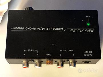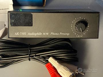 L’apparecchio è nuovo lo vendo per errato acquisto. Il prephono AK-750S (spesso commercializzato sotto vari brand come N-Audio o Audien) è un dispositivo ultra-compatto progettato specificamente per testine Moving Magnet (MM). La sua funzione principale è convertire il segnale debole del giradischi in un segnale a livello di linea, rendendolo compatibile con ingressi AUX o standard di amplificatori e casse attive. Ecco le principali peculiarità tecniche: Caratteristiche Tecniche Principali •Configurazione Audiophile M/M: Ottimizzato per la gestione del segnale proveniente da testine a magnete mobile, garantendo la corretta equalizzazione RIAA. •Controllo del Livello (Gain): A differenza di molti preamplificatori economici, dispone di una manopola per la regolazione del volume di uscita, utile per bilanciare il segnale prima che arrivi all'amplificatore principale. •Costruzione Robusta: Lo chassis è realizzato interamente in metallo, una scelta che non solo garantisce durevolezza, ma aiuta a schermare i circuiti interni da interferenze elettromagnetiche esterne. •Circuitazione Low-Noise: Utilizza amplificatori operazionali a basso rumore per minimizzare il fruscio di fondo tipico delle amplificazioni phono ad alto guadagno. Specifiche di Connessione e Dimensioni CaratteristicaDettaglio Ingressi2 x RCA (L & R) Uscite2 x RCA (L & R) AlimentazioneDC 12V (alimentatore esterno incluso) DimensioniCirca 10,3 x 5,7 x 3 cm PesoCirca 174g