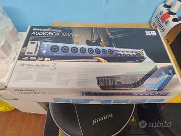 Vendo PreSonus Audiobox 1818VSL in condizioni eccellenti pari al nuovo, tenuta sempre in studio di registrazione all’interno del rack. Comprende anche la sua scatola originale, alimentatore originale e cavo usb. Funziona con tutti i sistemi OSX e Windows 10 e 11.Queste sono le caratteristiche