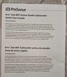 Vendo splendido subwoofer attivo PreSonus Eris Sub 8BT, la versione più recente e costosa dotata anche di connettività Bluetooth. L'oggetto è in condizioni pari al nuovo, usato pochissimo esclusivamente in abitazione privata. (smoke-free). Perfetto per estendere la risposta in frequenza dei vostri monitor da studio (ideale con le serie Eris 3.5, 4.5, 5 o simili, ma anche Yamaha HS5 HS7 e KRK). ✅ Condizioni: 10/10 (sia estetico che di funzionamento). ✅ Acquisto: Ottobre 2025 (in garanzia residua fino ad Ottobre 2027). ✅ Incluso: Imballo originale, Quick Guide e Ricevuta Fiscale di acquisto, cavo di alimentazione. Prezzo attuale sul nuovo: circa 180/188 € Vendo a 125 € tratt. Un'occasione unica per avere un subwoofer professionale, potente e versatile (grazie al Bluetooth) a un prezzo affare, con la tranquillità della garanzia originale. Prediligo la consegna a mano a Palermo così potete visionare e provare l'oggetto di persona.