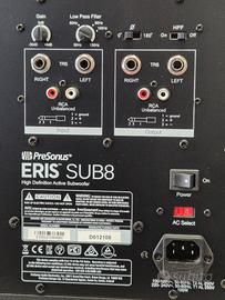 Vendo subwoofer Presonus Eris Sub 8 usato pochissimo, perfettamente funzionante. Ha solo un piccolo segno sul posteriore, visibile nelle foto.